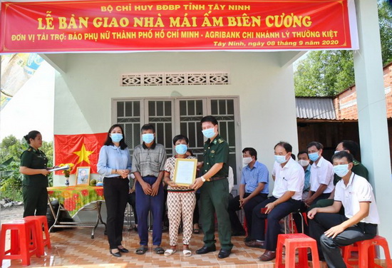 Ngày 8.9.2020, Bộ Chỉ huy BĐBP tỉnh Tây Ninh phối hợp Báo Phụ Nữ TP.Hồ Chí Minh bàn giao Mái ấm biên cương cho vợ chồng chị Huỳnh Thị An và anh Nguyễn Văn Cu (ngụ ấp Phước Hoà, xã Phước Chỉ, huyện Trảng Bàng).