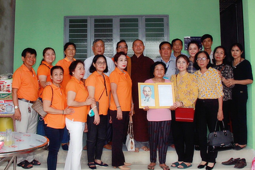 Dịp này, một số tiểu thương chợ Long Hoa, các phật tử cũng đã trao tặng cho bà Sương nhiều phần quà mừng nhà mới.