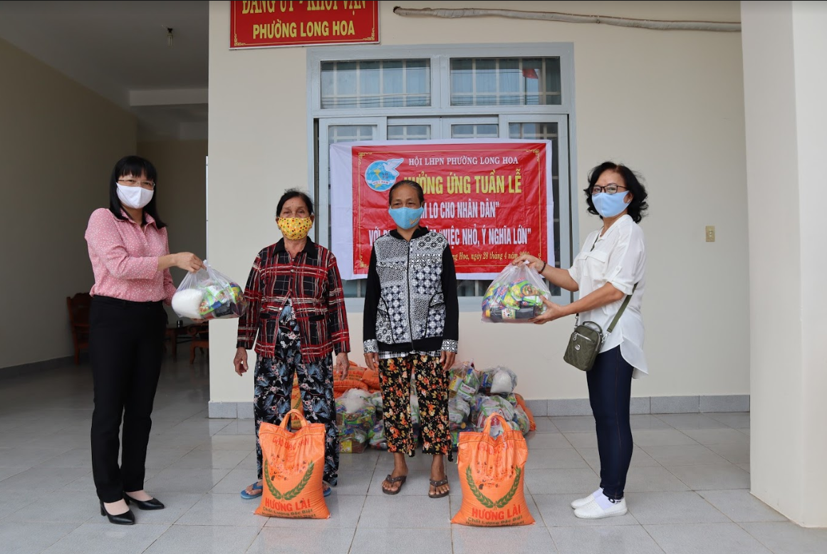 Mỗi phần quà trị giá 300 nghìn đồng, gồm: gạo, mì gói và một số nhu yếu phẩm. Tổng trị giá quà tặng 15 triệu đồng. Nguồn kinh phí do Hội LHPN Phường Long Hoa vận động mạnh thường quân hỗ trợ.