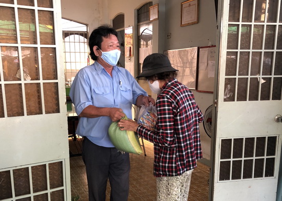 Thành viên Nhóm Thiện Nguyện Xanh Tây Ninh phát quà cho bà con