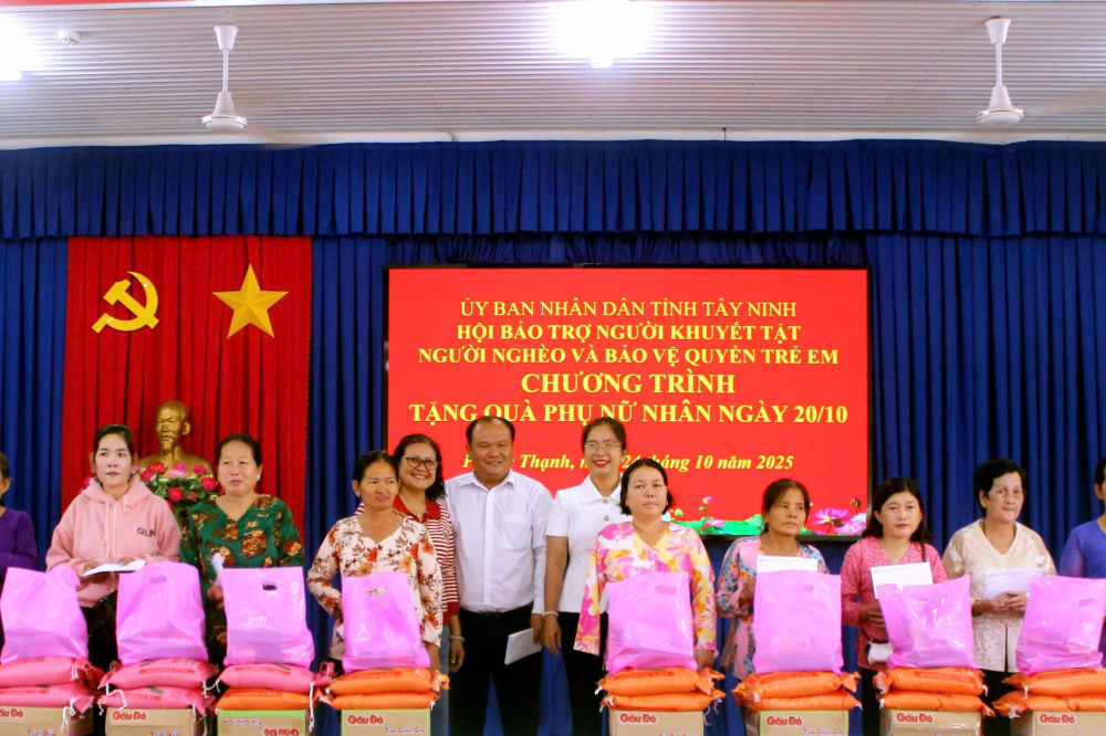 Ngày 24/10, tại Hội trường UBND xã Phước Thạnh, Hội Bảo trợ Người khuyết tật, người nghèo và bảo vệ quyền trẻ em tỉnh Tây Ninh phối hợp Trường Trung cấp Á Châu và nhóm tình thương phường Hiệp Ninh tổ chức chương trình “Tặng quà phụ nữ nhân ngày 20/10”.