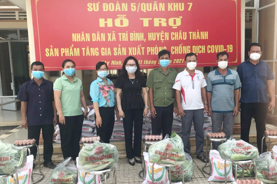 Ngày 11.9, Sư đoàn Bộ binh 5, Sở Nông Nghiệp và Phát triển Nông thôn và Công ty TNHH Hữu Đức tổ chức trao quà cho người dân bị ảnh hưởng dịch Covid-19 tại xã Trí Bình, huyện Châu Thành.