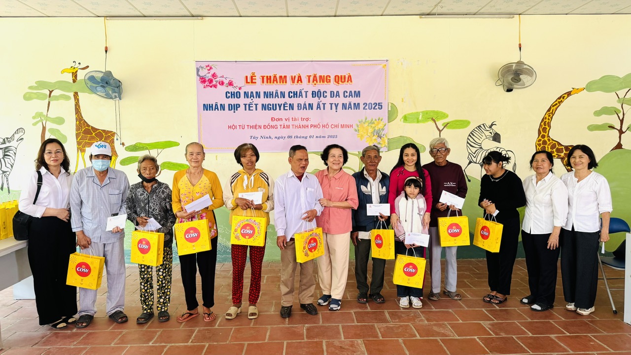 Tại chương trình, bà Võ Thị Đẹp- Chủ tịch Hội Nạn nhân chất độc da cam/Dioxin tỉnh cùng các thành viên Câu lạc bộ từ thiện Đồng Tâm (Thành phố Hồ Chí Minh) trao tặng mỗi nạn nhân chất độc da cam 1 phần quà trị giá 600.000 đồng (gồm bánh, kẹo tết và 500.000 đồng tiền mặt); tổng trị giá quà tặng 30 triệu đồng, do Hội Nạn nhân chất độc da cam/Dioxin tỉnh hỗ trợ.