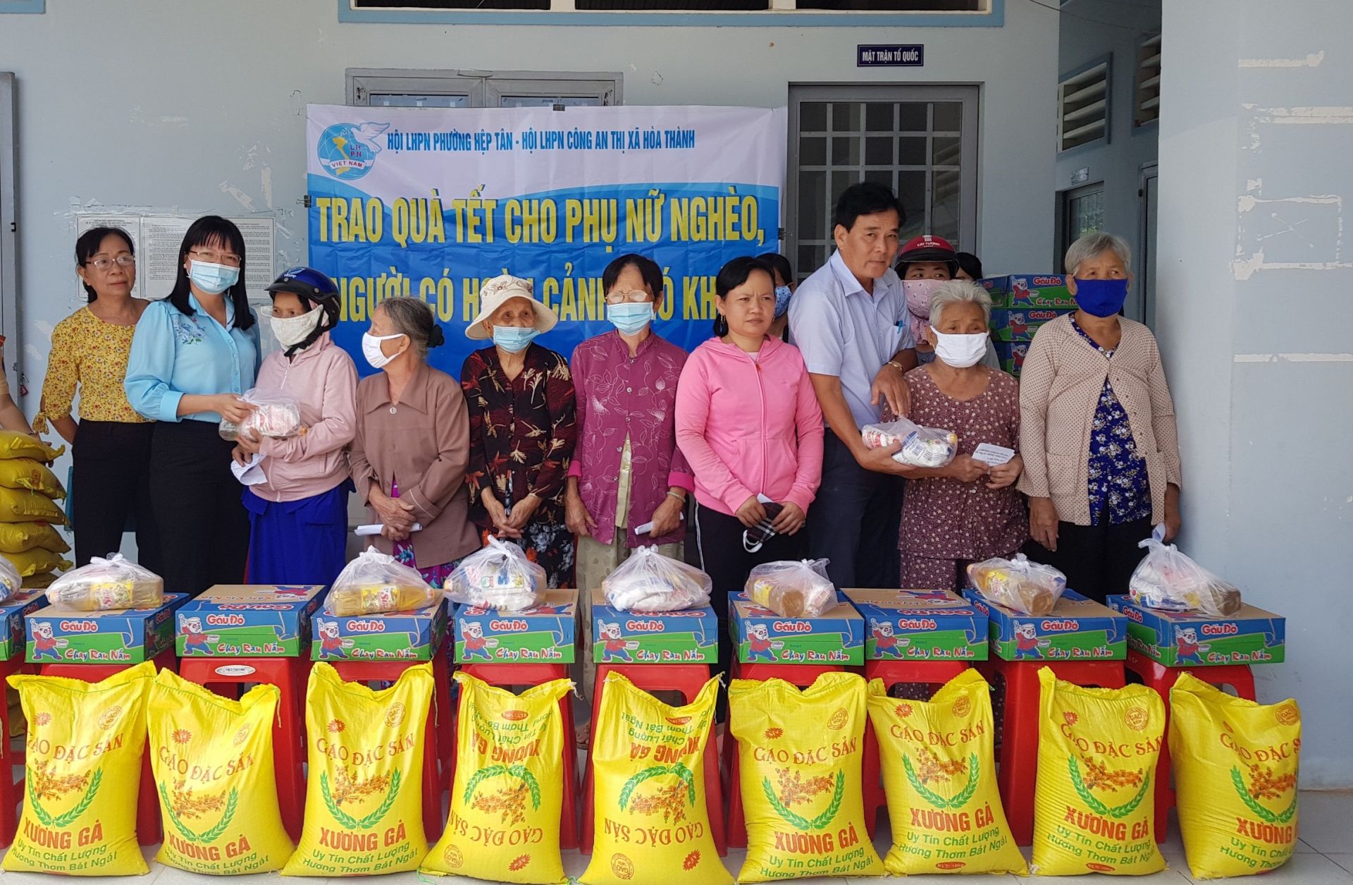 Ngày 29.1, Hội Phụ nữ Công an thị xã Hoà Thành phối hợp với Hội Liên hiệp Phụ nữ phường Hiệp Tân, Hội Nông dân phường tổ chức trao tặng quà tết cho người nghèo, phụ nữ có hoàn cảnh khó khăn ở phường.