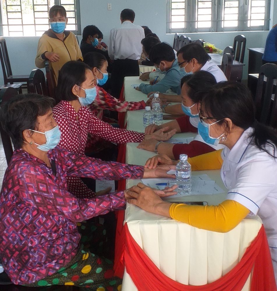 Tại đây, các y, bác sĩ tham gia chương trình đã khám bệnh, đo huyết áp, bắt mạch, bấm nguyệt, cấp thuốc miễn phí cho 100 người nghèo, người có hoàn cảnh khó khăn.