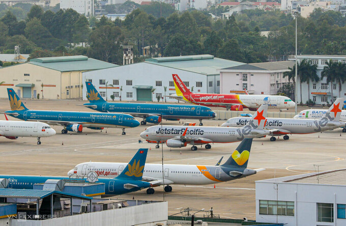 Máy bay đỗ tại sân bay Tân Sơn Nhất trong thời gian giãn cách xã hội. Ảnh: Quỳnh Trần.