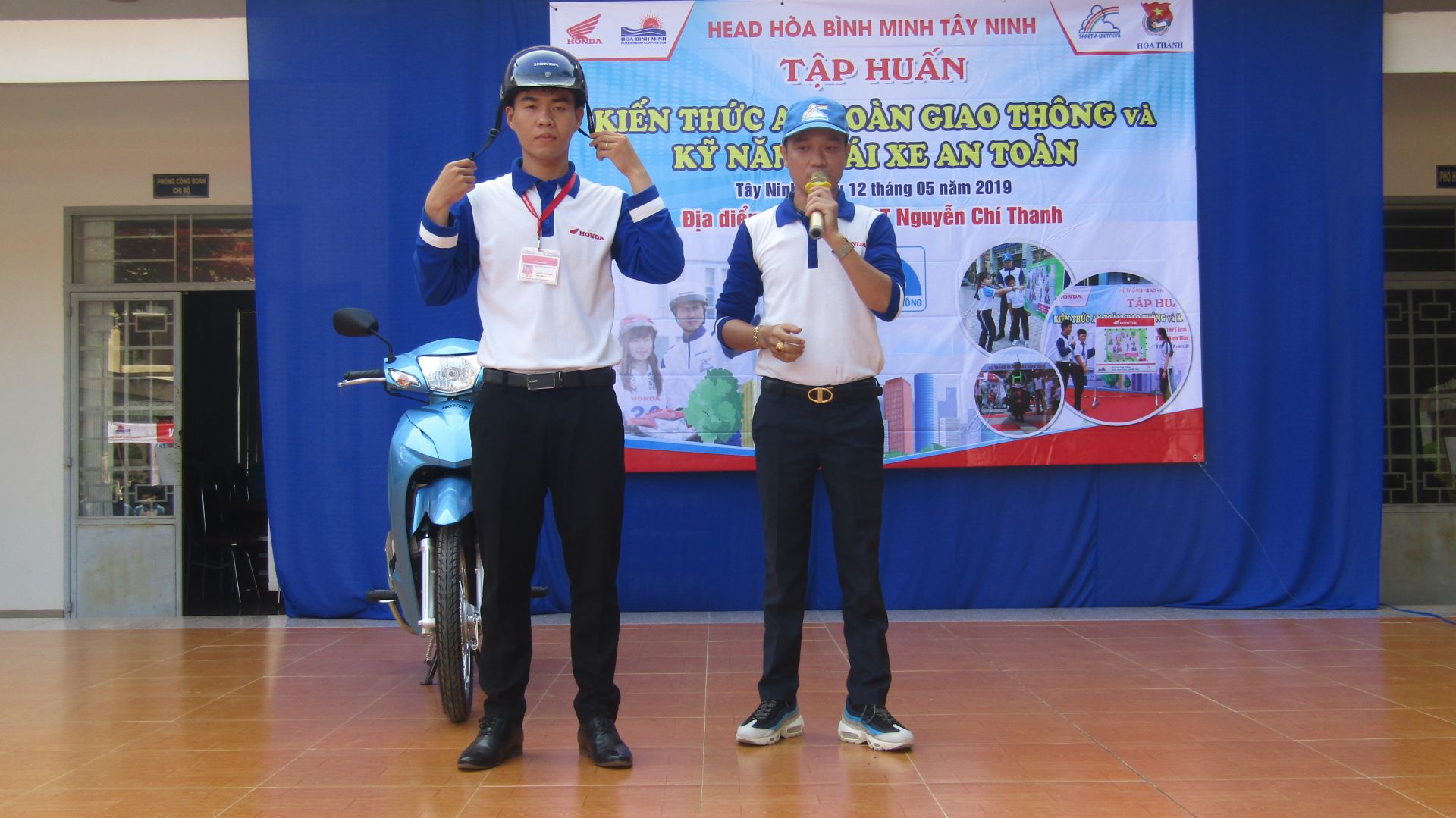 Ngày 12.5, Huyện đoàn Hoà Thành phối hợp Hệ thống xe máy Honda Hòa Bình Minh- Tây Ninh tổ chức tập huấn kiến thức an toàn giao thông và kỹ năng lái xe an toàn cho đoàn viên, thanh niên Trường THPT Nguyễn Chí Thanh (Hoà Thành).