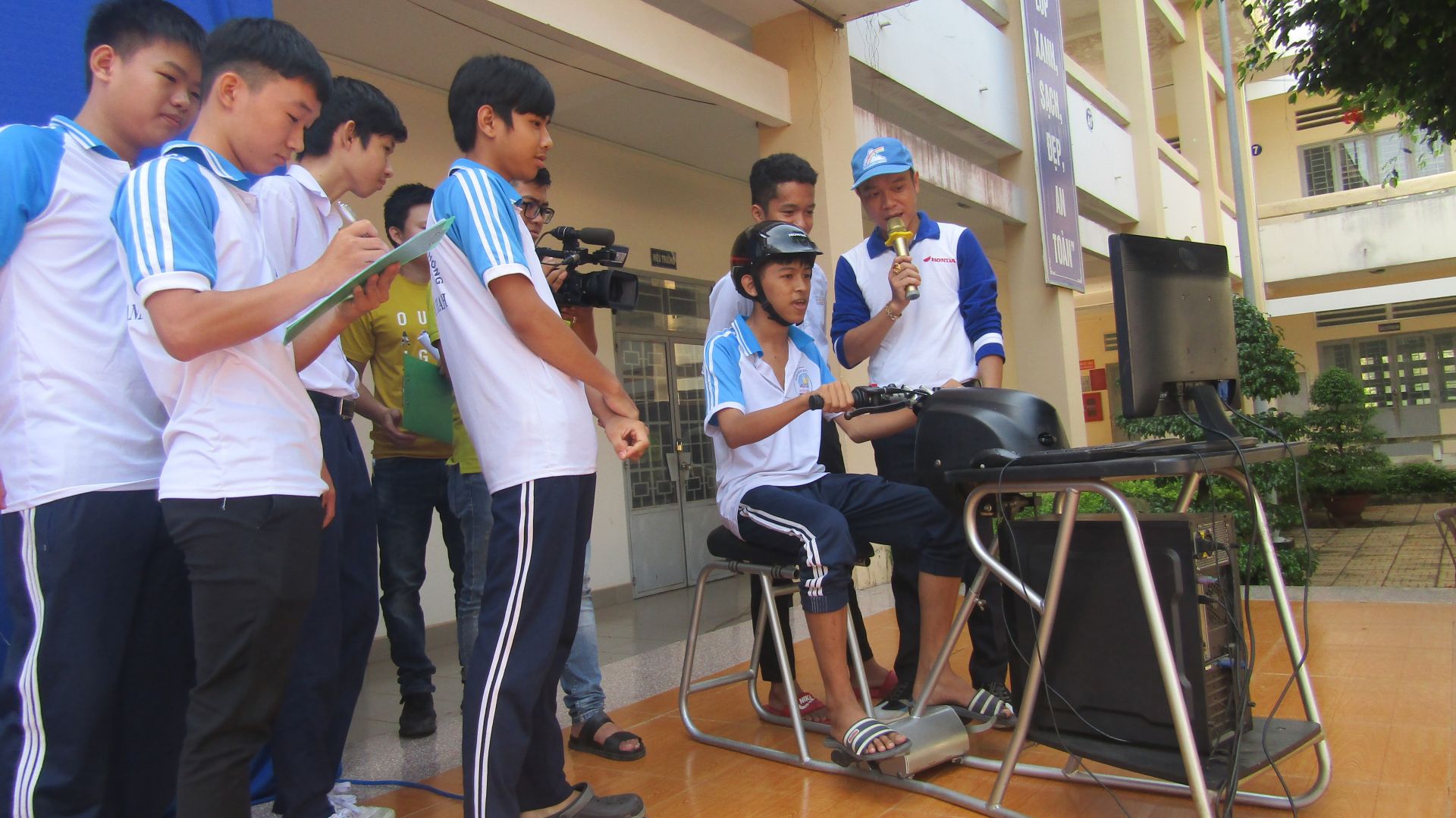Bên cạnh đó, các bạn đoàn viên, thanh niên trường THPT Nguyễn Chí Thanh còn được trải nghiệm việc lái xe an toàn thông qua mô hình lái xe điện tử; thực hành lái xe an toàn trên địa hình thực tế và giao lưu, trả lời các câu hỏi về ATGT, thi trắc nghiệm kiến thức với nhiều phần quà từ nhà tài trợ Honda.