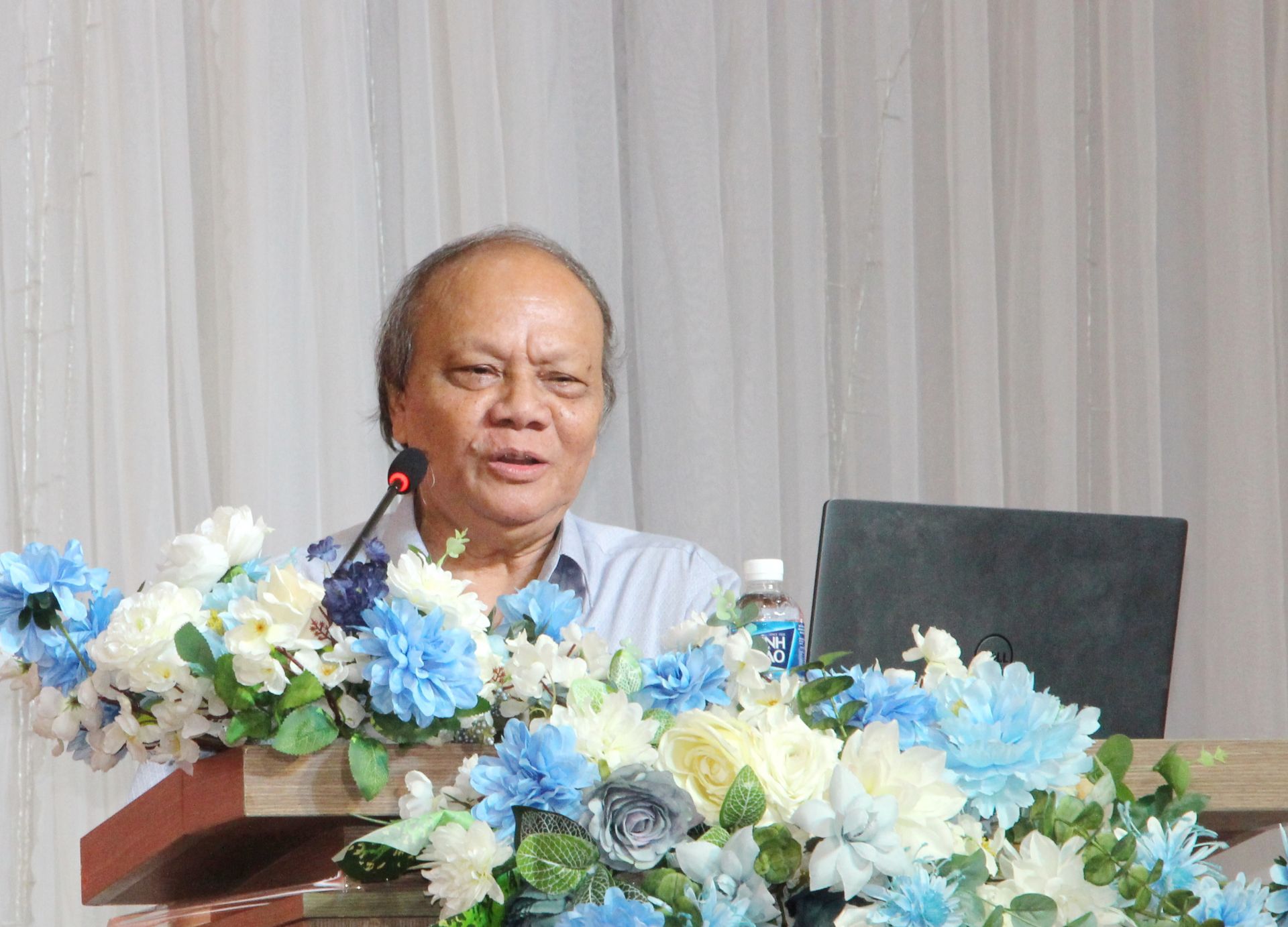 Phó Giáo sư - Tiến sĩ Lương Khắc Hiếu- nguyên Phó Giám đốc Học viện Báo chí và Tuyên truyền trình bày nội dung nghiệp vụ công tác tuyên truyền và định hướng dư luận xã hội.