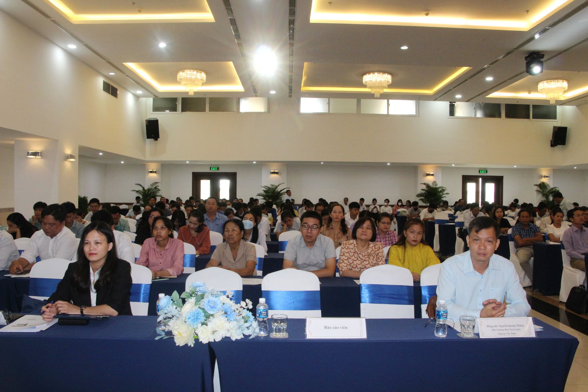 Dự hội nghị có Phó Vụ trưởng Vụ Tuyên truyền Ban Tuyên giáo Trung ương Nguyễn Thị Thu Hoài, bà Nguyễn Thị Ánh, ông Nguyễn Công Dẫn - Phó Vụ trưởng, Phó trưởng cơ quan thường trực khu vực phía Nam Ban Tuyên giáo Trung ương; ông Nguyễn Quang Thắng- Phó Trưởng Ban Tuyên giáo Tỉnh ủy và hơn 200 cán bộ tuyên giáo, đội ngũ báo cáo viên, tuyên truyền viên và cán bộ làm công tác thông tin cơ sở cấp xã.