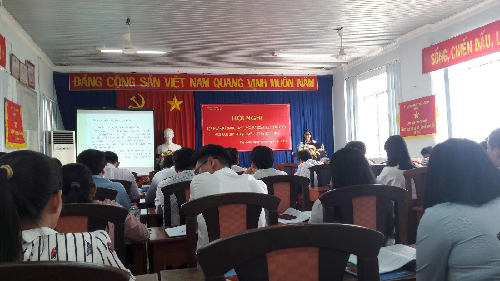 Sở Tư pháp Tây Ninh vừa tổ chức Hội nghị tập huấn kỹ năng xây dựng, rà soát, hệ thống hoá văn bản quy phạm pháp luật, kỳ 2014 – 2018 cho cán bộ làm công tác văn bản và công tác pháp chế trên địa bàn tỉnh.