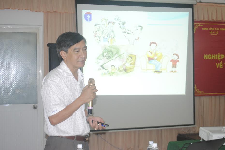 Bác sĩ Trần Thung- Giám đốc Trung tâm truyền thông giáo dục sức khỏe (Sở Y tế) trình bày về những tác hại của khói thuốc lá hiện nay.