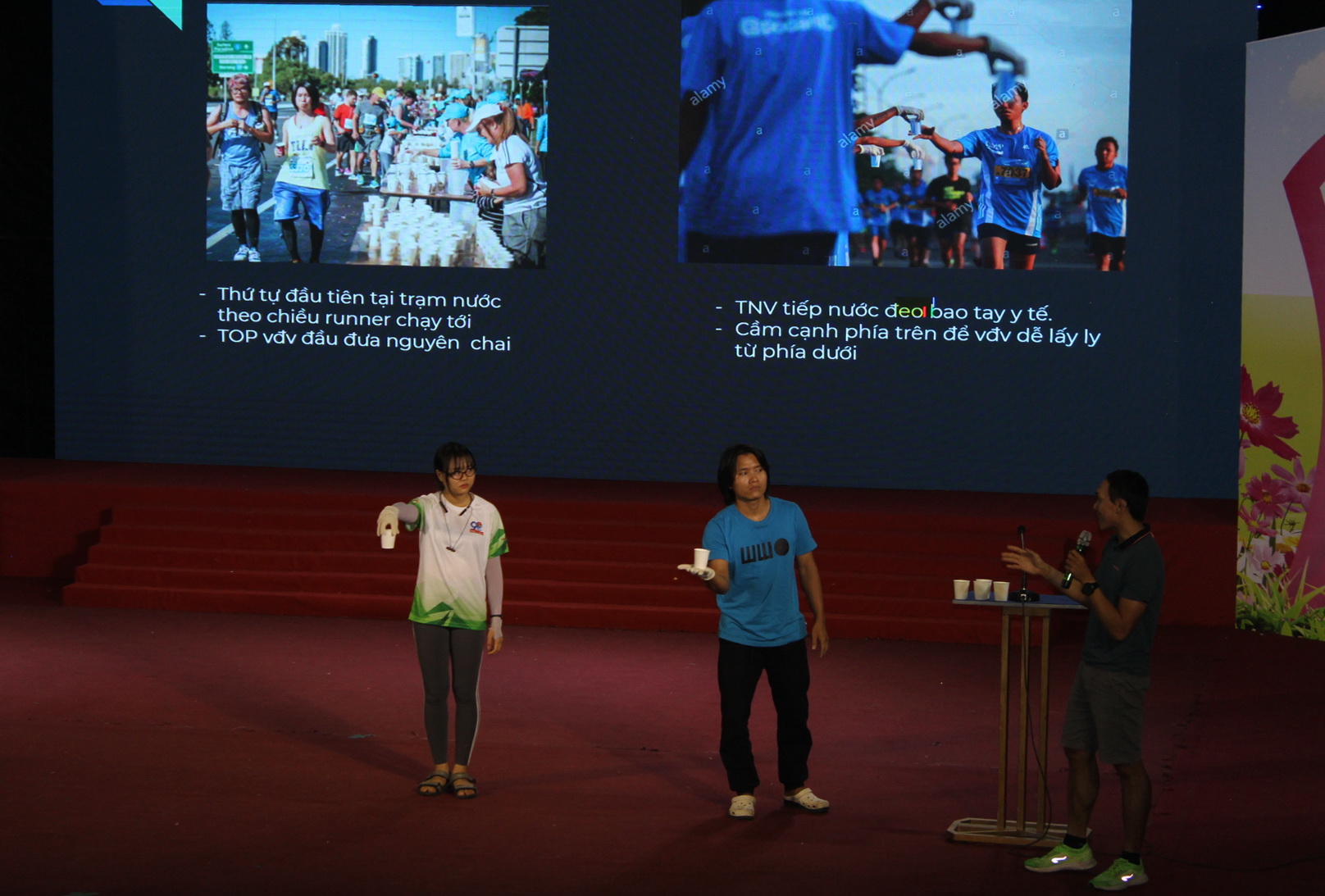 Tập huấn kỹ năng tiếp nước cho các vận động viên khi tham gia trên đường chạy.