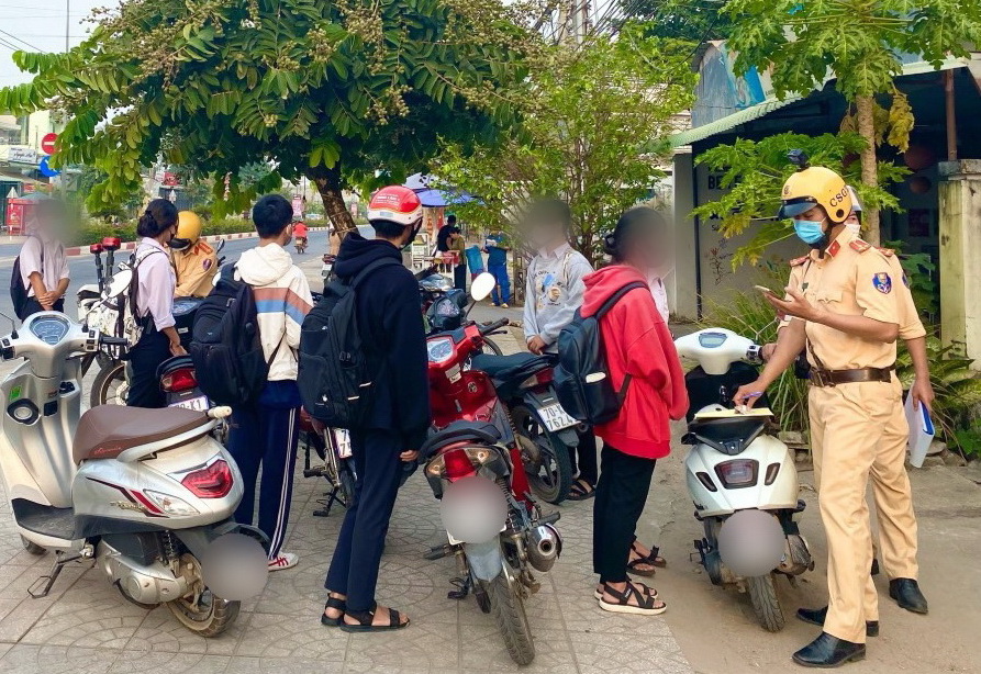 Để phòng ngừa, kéo giảm tai nạn giao thông xảy ra với lứa tuổi học sinh, sinh viên, lực lượng Cảnh sát giao thông toàn tỉnh tăng cường kiểm soát xử lý các trường hợp học sinh sử dụng mô tô, xe máy, xe máy điện đến trường vi phạm về trật tự an toàn giao thông, kiên quyết xử lý nghiêm các trường hợp giao xe cho người chưa đủ tuổi, chưa đủ điều kiện điều khiển.