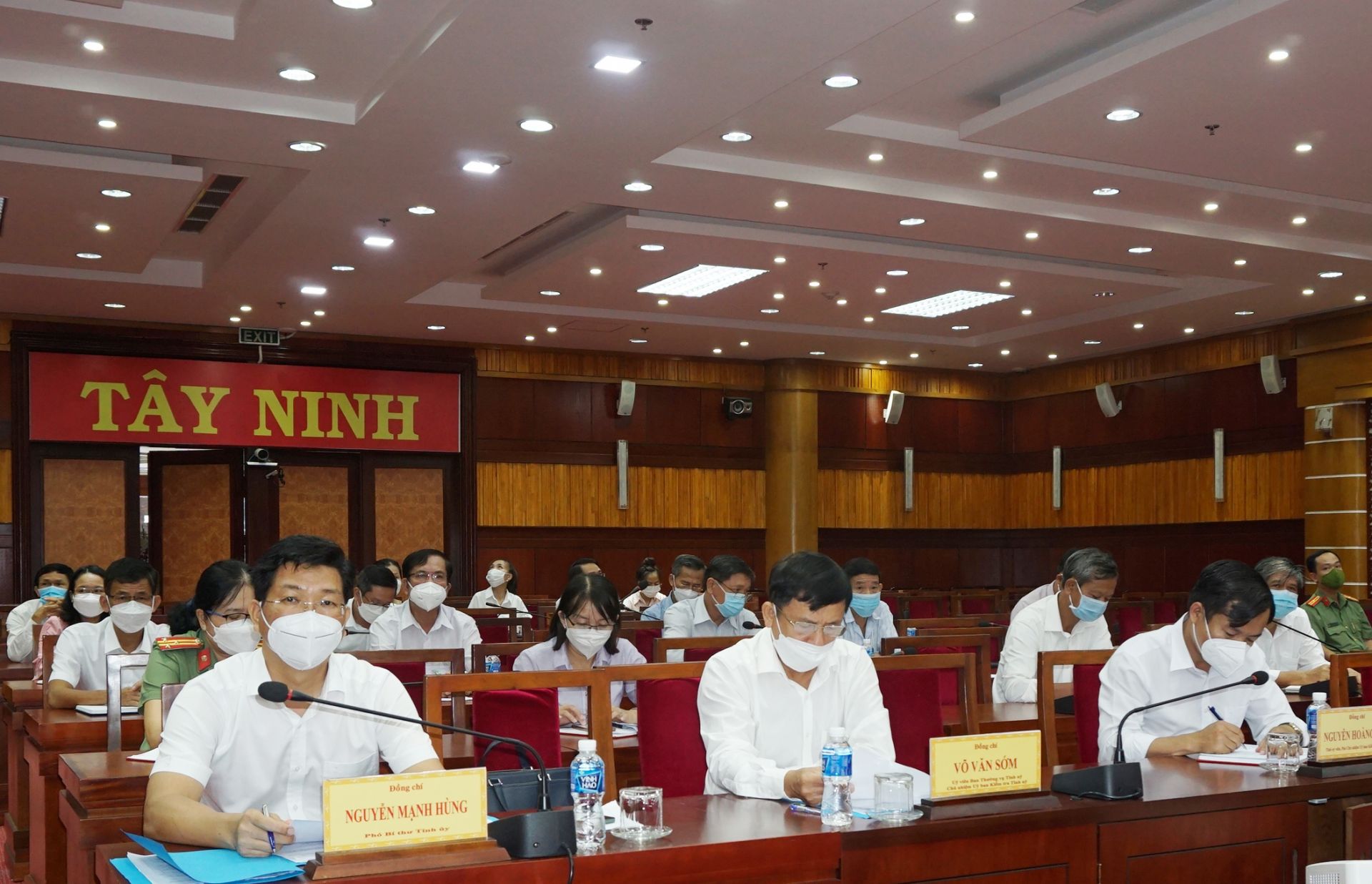 Phó Bí thư Tỉnh uỷ Nguyễn Mạnh Hùng và các đại biểu tham dự hội nghị tại điểm cầu tỉnh Tây Ninh.
