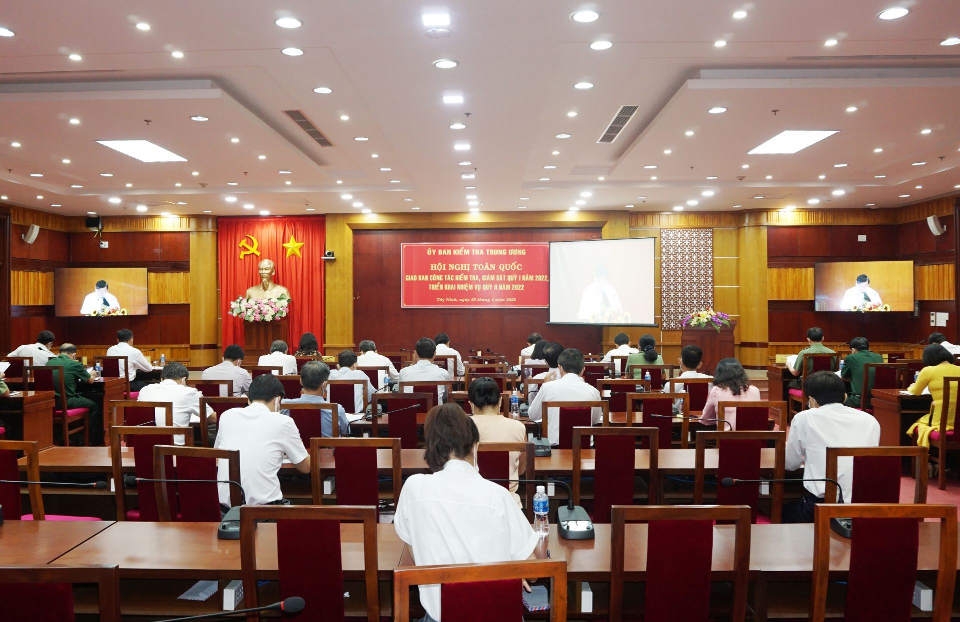 Sáng 25.4, Uỷ ban Kiểm tra (UBKT) Trung ương tổ chức hội nghị toàn quốc bằng hình thức trực tuyến giao ban công tác kiểm tra, giám sát quý I, triển khai nhiệm vụ quý II.2022. Ông Trần Cẩm Tú- Uỷ viên Bộ Chính trị, Bí thư Trung ương Đảng, Chủ nhiệm Uỷ ban Kiểm tra Trung ương chủ trì hội nghị tại điểm cầu Hà Nội. Tham dự tại điểm cầu tỉnh Tây Ninh có Phó Bí thư Tỉnh uỷ Nguyễn Mạnh Hùng, Chủ nhiệm Uỷ ban Kiểm tra Tỉnh uỷ Võ Văn Sớm.