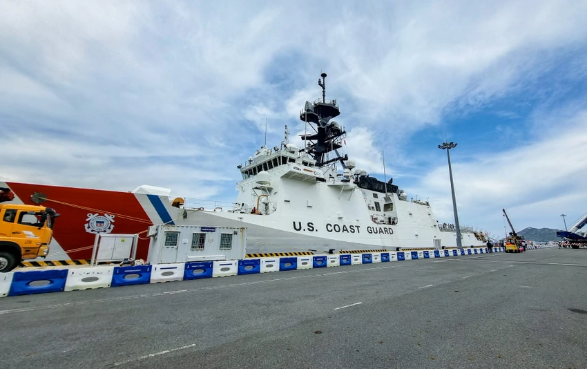 Tàu USS Blue Ridge của hải quân Hoa Kỳ và tàu Waesche của lực lượng tuần duyên Hoa Kỳ cập cảng quốc tế Cam Ranh.