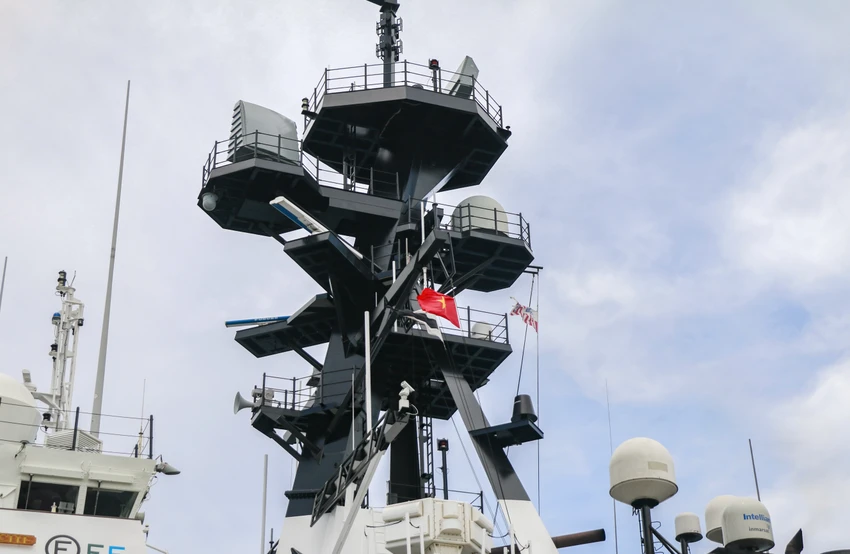 Đại tá Tyson Scofield, Chỉ huy trưởng tàu USCGC Waesche (bìa phải) bắt tay lãnh đạo đoàn Việt Nam.