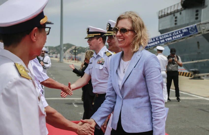 Bà Susan Burns, Tổng lãnh sự Hoa Kỳ tại TP HCM, bày tỏ vui mừng khi được đến cảng quốc tế Cam Ranh, thăm xã giao tỉnh Khánh Hòa và các lực lượng hải quân đóng quân ở Khánh Hòa.