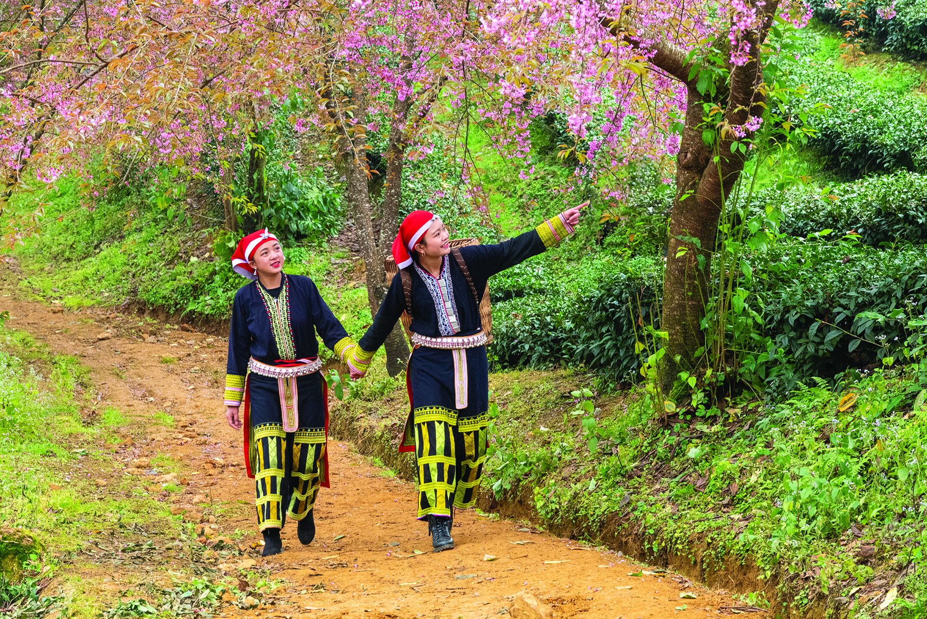 Sắc hồng trên đồi chè. Ảnh: Đỗ Thành Nhân