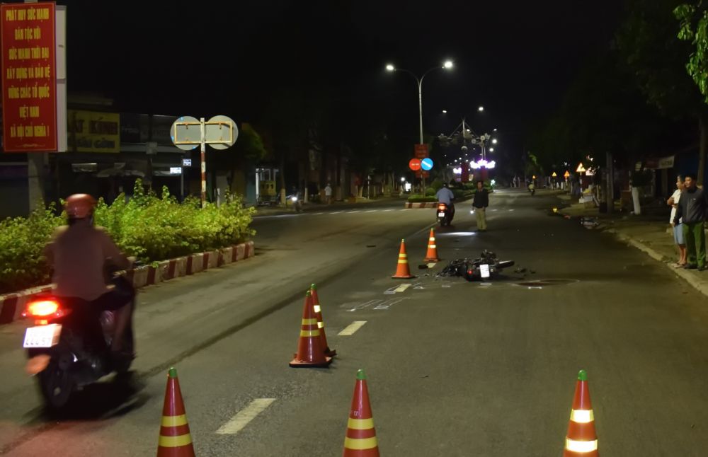 Hiện trường một vụ TNGT xảy ra trên địa bàn TP. Tây Ninh.