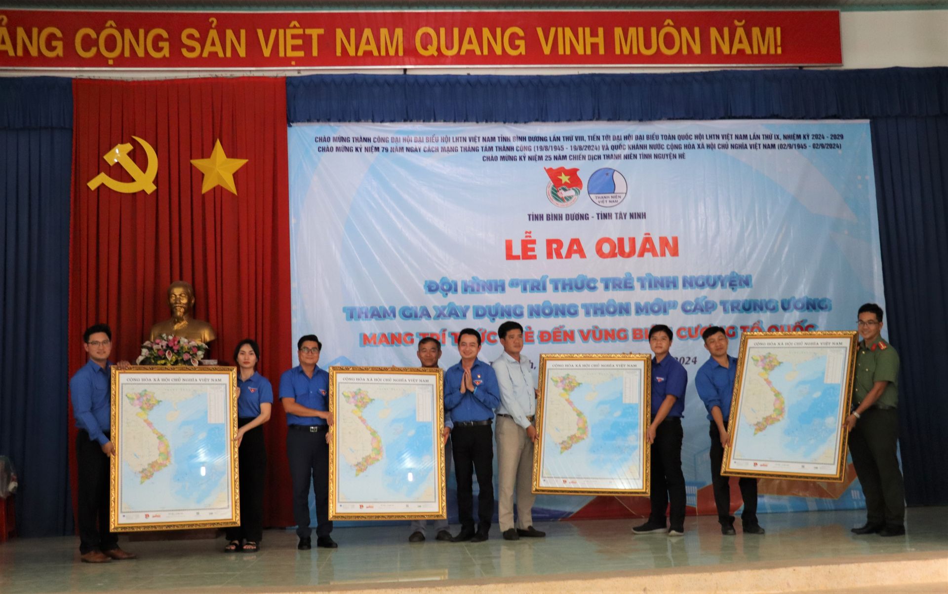 Tỉnh đoàn Bình Dương tặng bản đồ Việt Nam cho xã Long Thuận, huyện Bến Cầu.