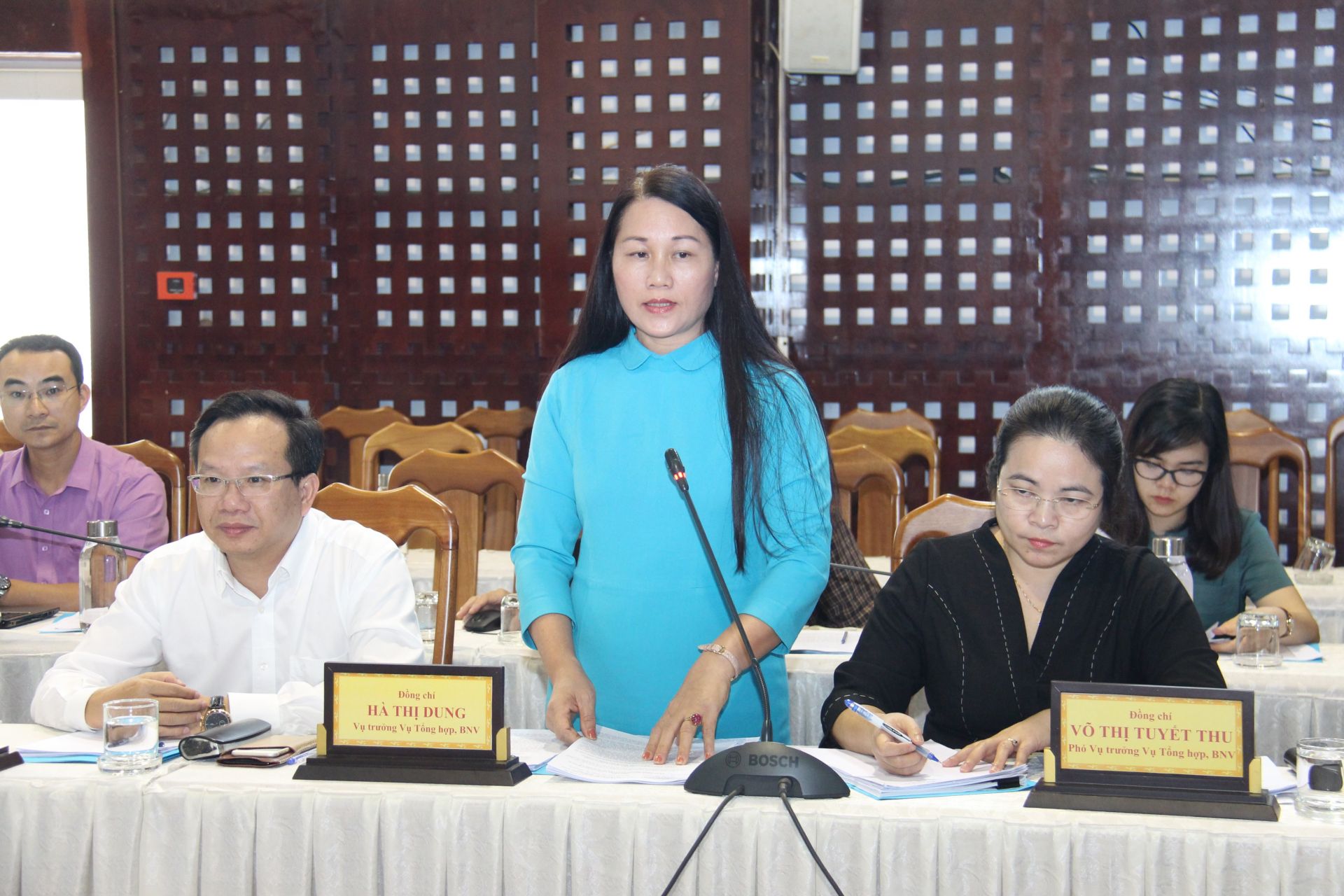 Bà Hà Thị Dung - Vụ trưởng Vụ Tổng hợp Bộ Nội vụ đóng góp ý kiến cho tỉnh