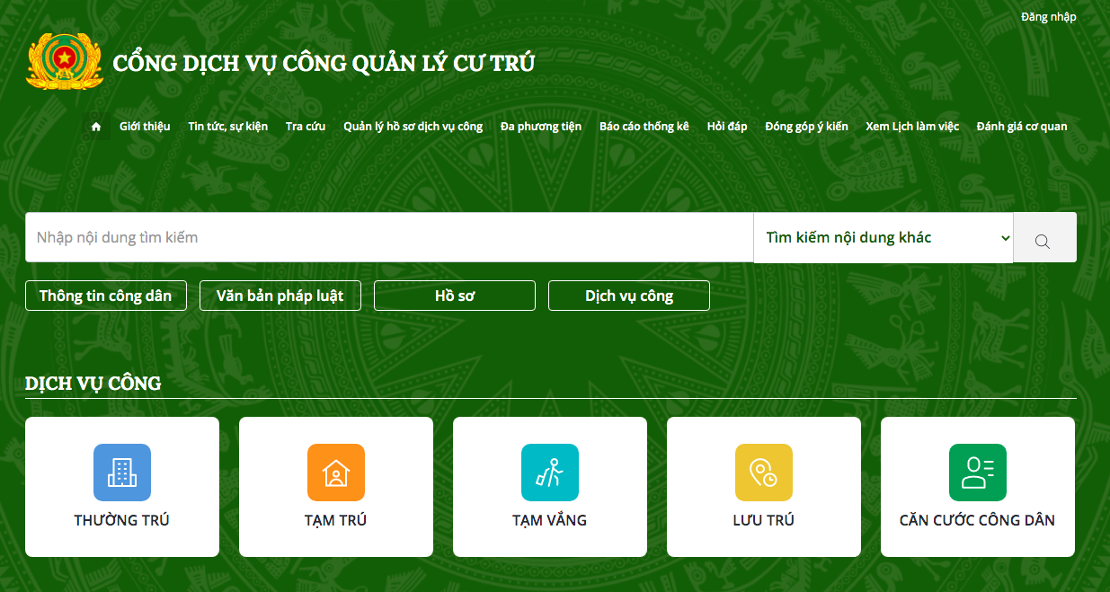 Giao diện Cổng dịch vị công quản lý cư trú https://dichvucong.dancuquocgia.gov.vn