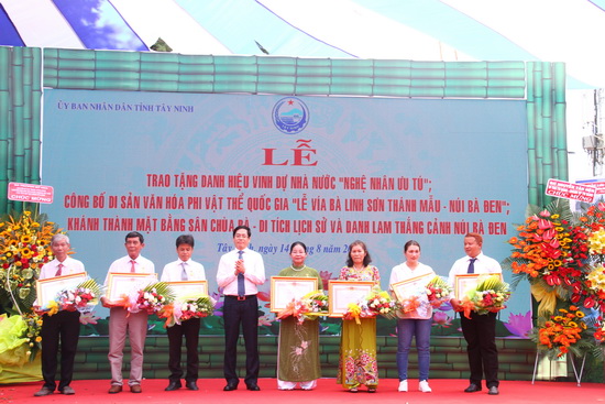 Dịp này, UBND tỉnh Tây Ninh cũng đã trao tặng danh hiệu vinh dự Nhà nước “Nghệ nhân ưu tú” cho bảy nghệ nhân dân gian tại địa phương; đồng thời khánh thành công trình mở rộng mặt bằng sân chùa Bà nhằm tạo cảnh quan phục vụ du khách. Công trình do Công ty Mặt Trời Tây Ninh và Công ty CP Cáp treo Tây Ninh tài trợ.