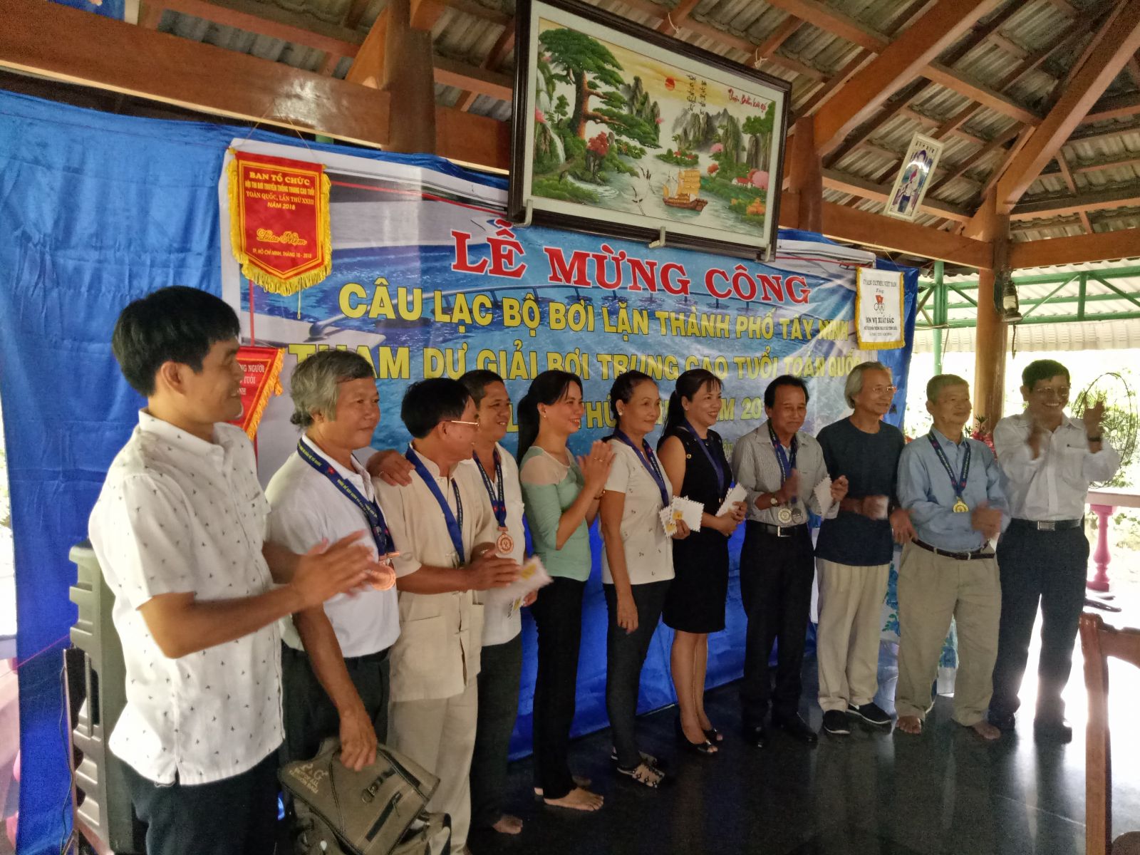 Tại buổi lễ, Ban chủ nhiệm CLB bơi lặn Thành phố Tây Ninh đã khen thưởng cho 10 cá nhân đạt thành tích xuất sắc tại hội thi bơi truyền thống trung cao tuổi toàn quốc lần thứ XXIII năm 2018.