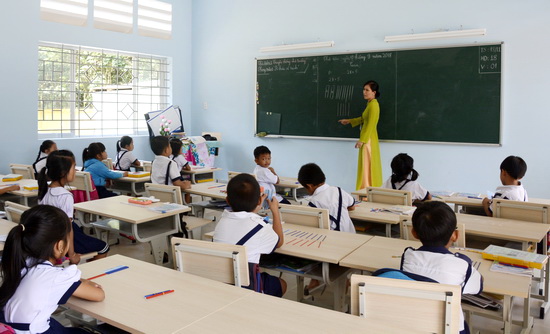 Cô và trò Trường tiểu học Hoà Hội (Châu Thành) trong một tiết lên lớp- Ảnh minh hoạ