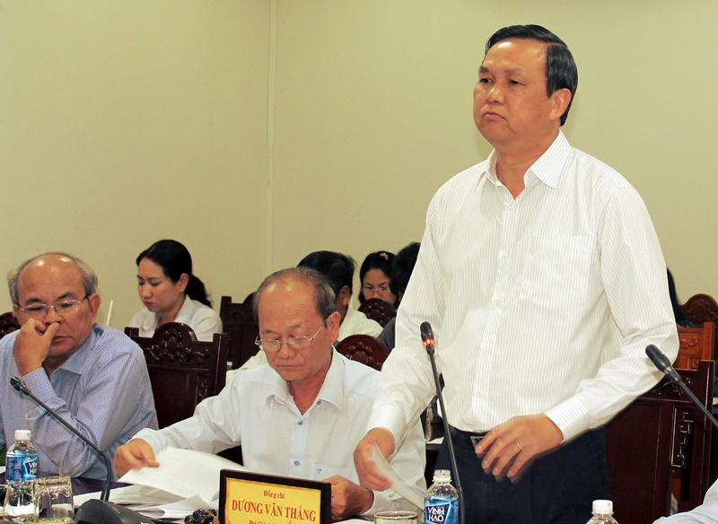 | Phó Chủ tịch UBND tỉnh Dương Văn Thắng phát biểu tại buổi làm việc với đoàn công tác Bộ Y tế. |