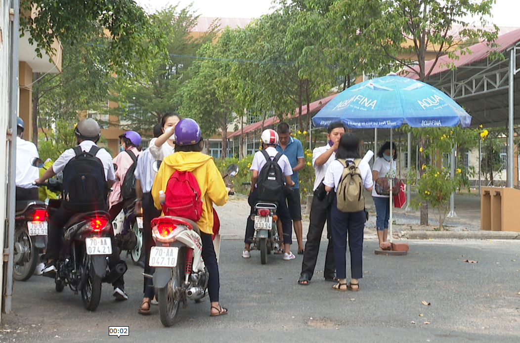 Học sinh Trường THPT Tây Ninh được đo thân nhiệt trước khi vào trường. Ảnh minh họa
