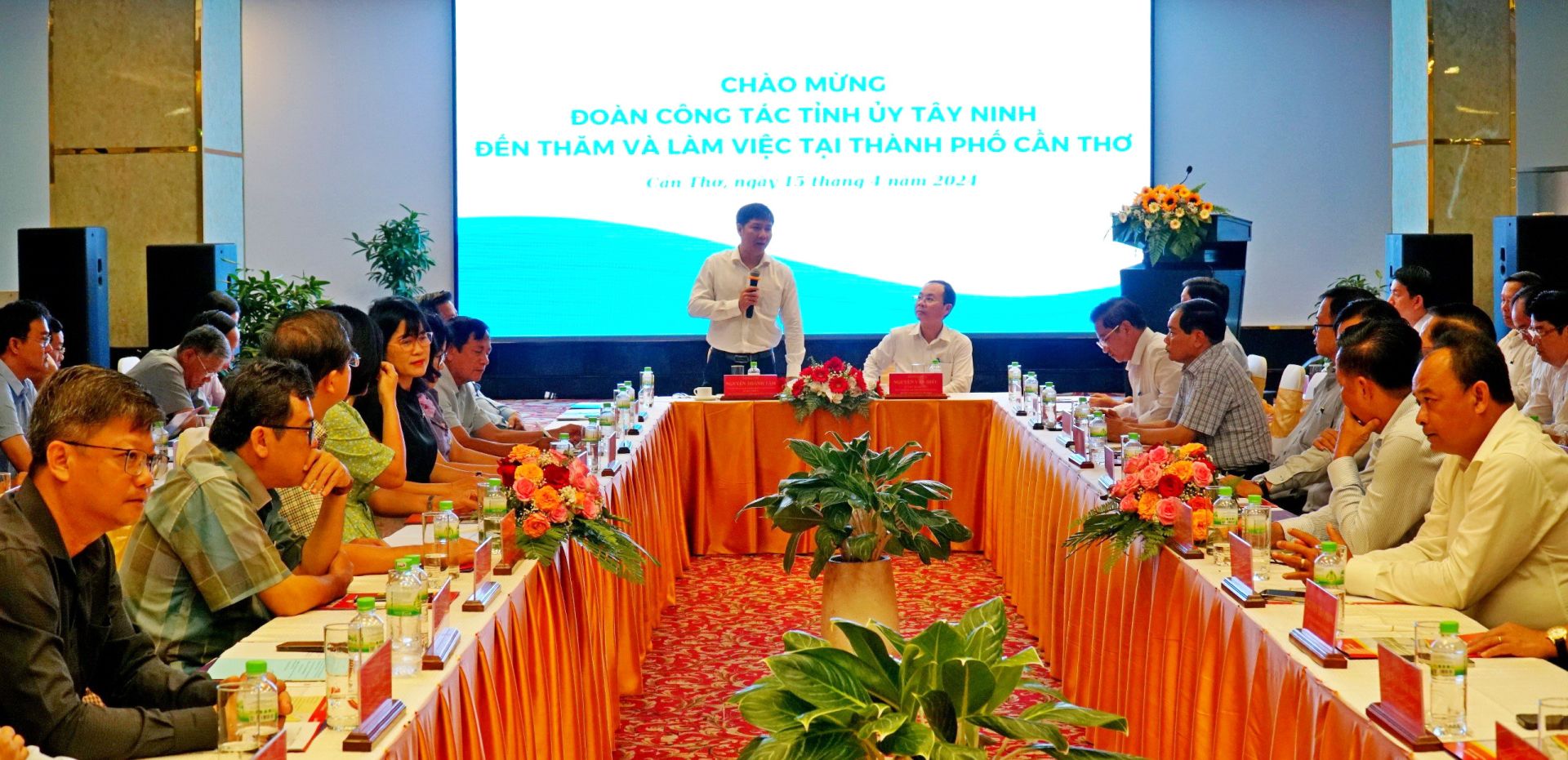 Ông Nguyễn Thành Tâm- Bí thư Tỉnh uỷ Tây Ninh thông tin một số kết quả về phát triển kinh tế - xã hội của tỉnh; mong muốn lãnh đạo TP. Cần Thơ chia sẻ kinh nghiệm trong xúc tiến đầu tư các dự án có giá trị kinh tế cao; kinh nghiệm về đền bù, giải phóng mặt bằng các dự án; kinh nghiệm về phát triển ngành du lịch…