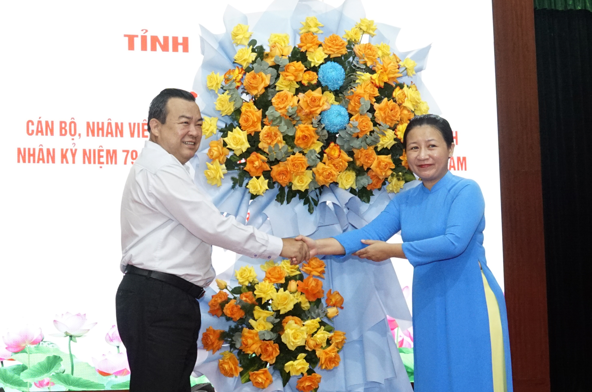 Phó Bí thư Thường trực Tỉnh uỷ Phạm Hùng Thái tặng lẵng hoa chúc mừng.