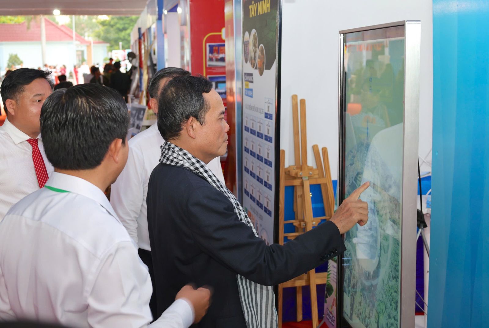 Đại biểu tham quan các gian trưng bày nhân dịp dự lễ kỷ niệm 50 năm ngày giải phóng Tây Ninh.