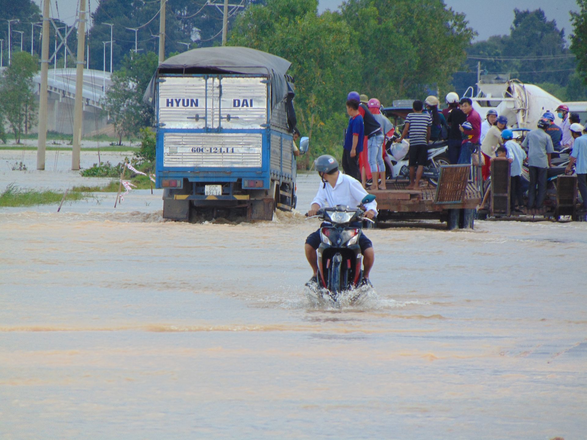 Vượt lũ ở cầu Bến Đình năm 2016.
