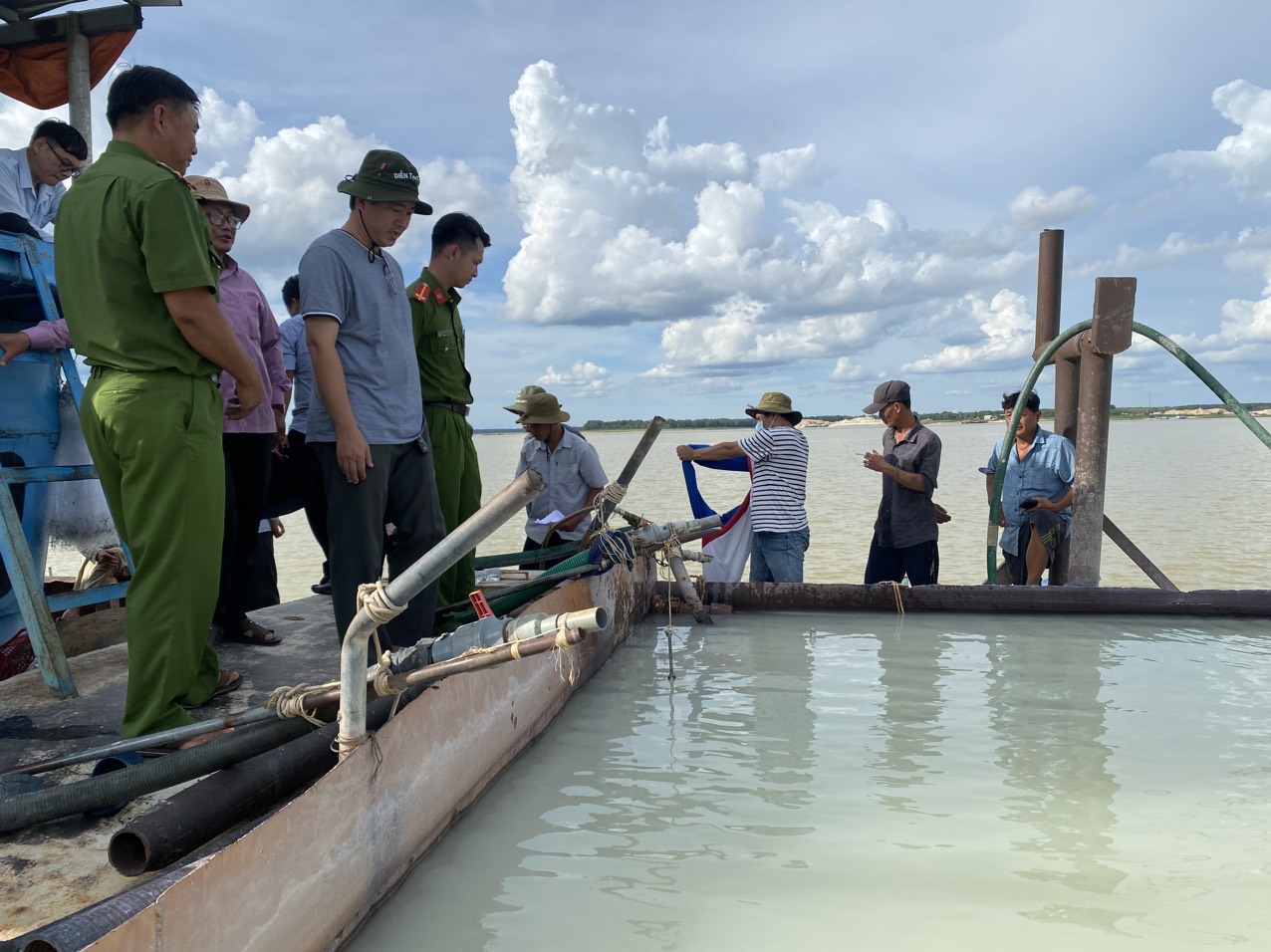 Do vị trí vi phạm thuộc địa phận tỉnh Bình Dương nên đoàn kiểm tra đã bàn giao toàn bộ hồ sơ vụ việc, khối lượng cát đã khai thác trong khoang tàu cho Phòng Cảnh sát môi trường Công an tỉnh Bình Dương chủ trì phối hợp với Công an huyện Dầu Tiếng và Phòng TN&MT huyện Dầu Tiếng, tỉnh Bình Dương tiếp tục làm rõ xử lý theo quy định.