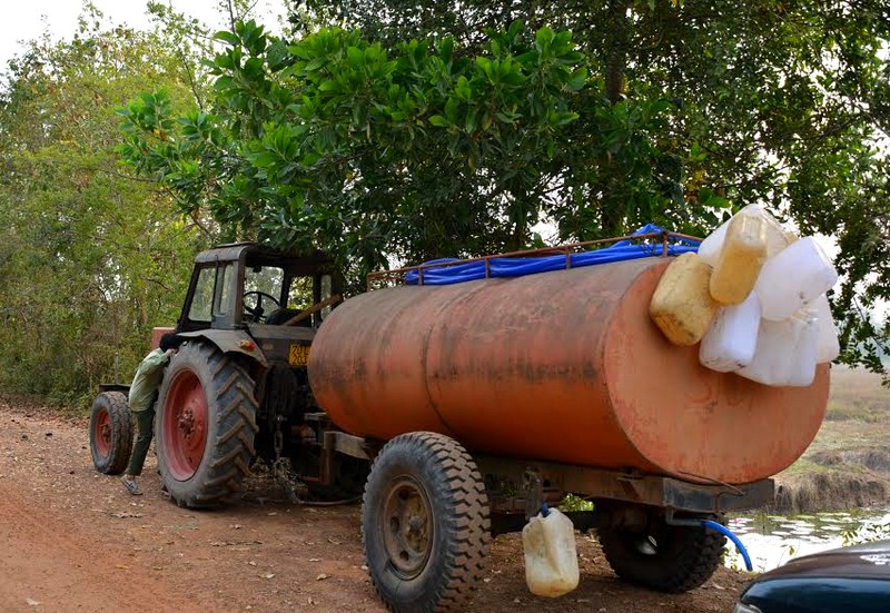 Xe máy cày vận chuyển nước luôn sẵn sàng cho công tác phòng cháy, chữa cháy rừng. |
