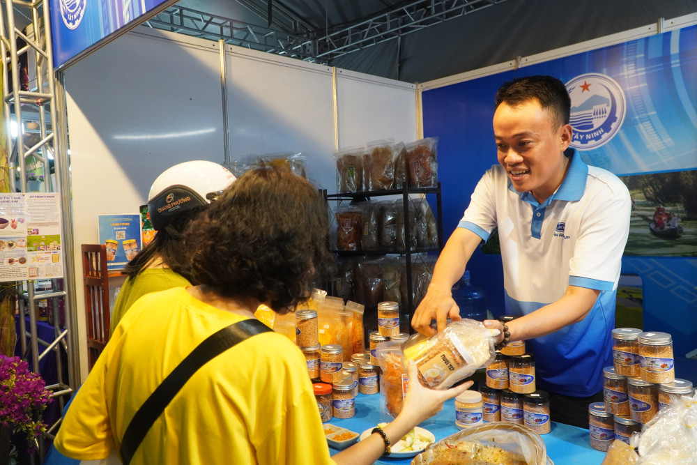 “Chúng tôi được tỉnh và Sở Công Thương hỗ trợ từ khâu bố trí gian hàng đến kệ trưng bày, nên doanh nghiệp yên tâm tham gia và tập trung giới thiệu sản phẩm. Phản hồi của khách hàng rất khả quan, cho thấy các sản phẩm của Tây Ninh ngày càng được thị trường quan tâm” - anh Dương chia sẻ.