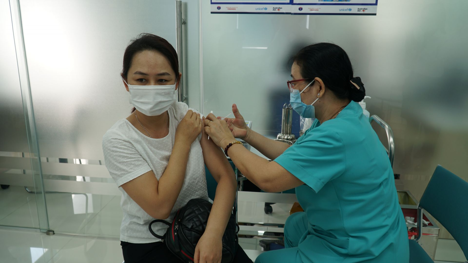 Một cán bộ y tế được tiêm vaccine phòng Covid – 19 tại Trung tâm tiêm chủng Tanimed