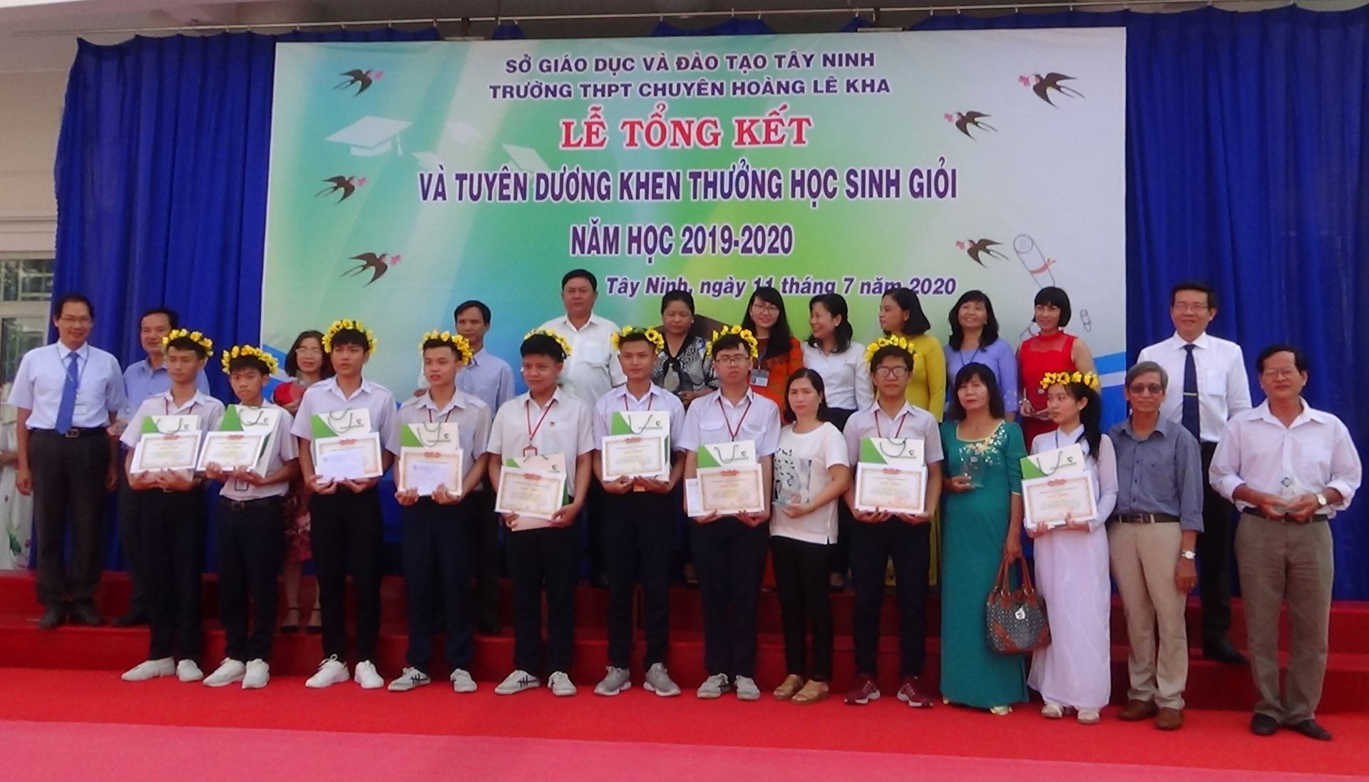 Trong buổi lễ tổng kết, nhà trường khen thưởng cho học sinh đạt giải học sinh giỏi quốc gia và các kỳ thi cấp quốc gia; các tập thể lớp đạt thành tích xuất sắc trong phong trào thi đua và các cán bộ Đoàn xuất sắc, học sinh xuất sắc nhất khối, các em học sinh giỏi, học sinh tiên tiến trong năm học 2019-2020.