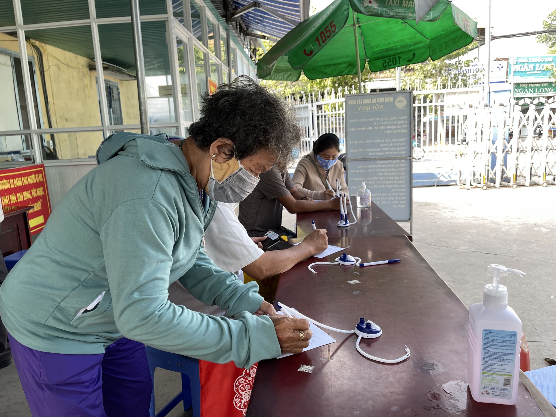 Người dân khai báo y tế tại Bệnh viện Đa khoa tỉnh.