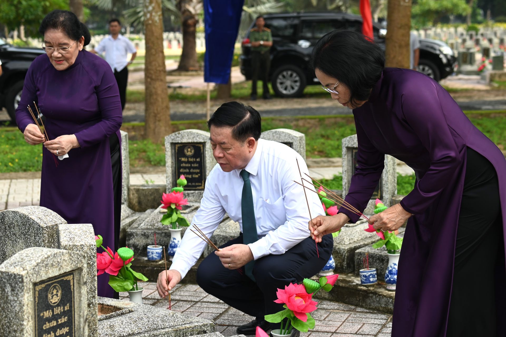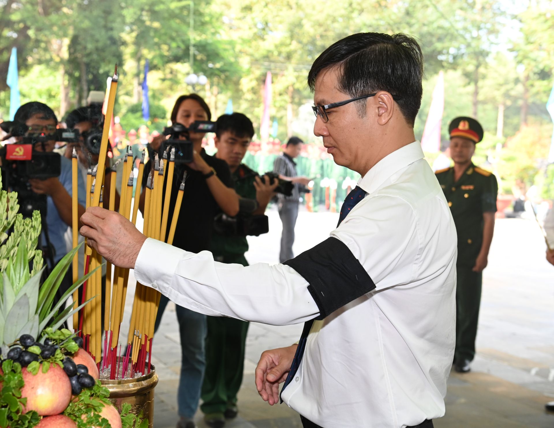 Bí thư Tỉnh uỷ Nguyễn Thành Tâm thắp hương tưởng nhớ những anh hùng liệt sĩ.