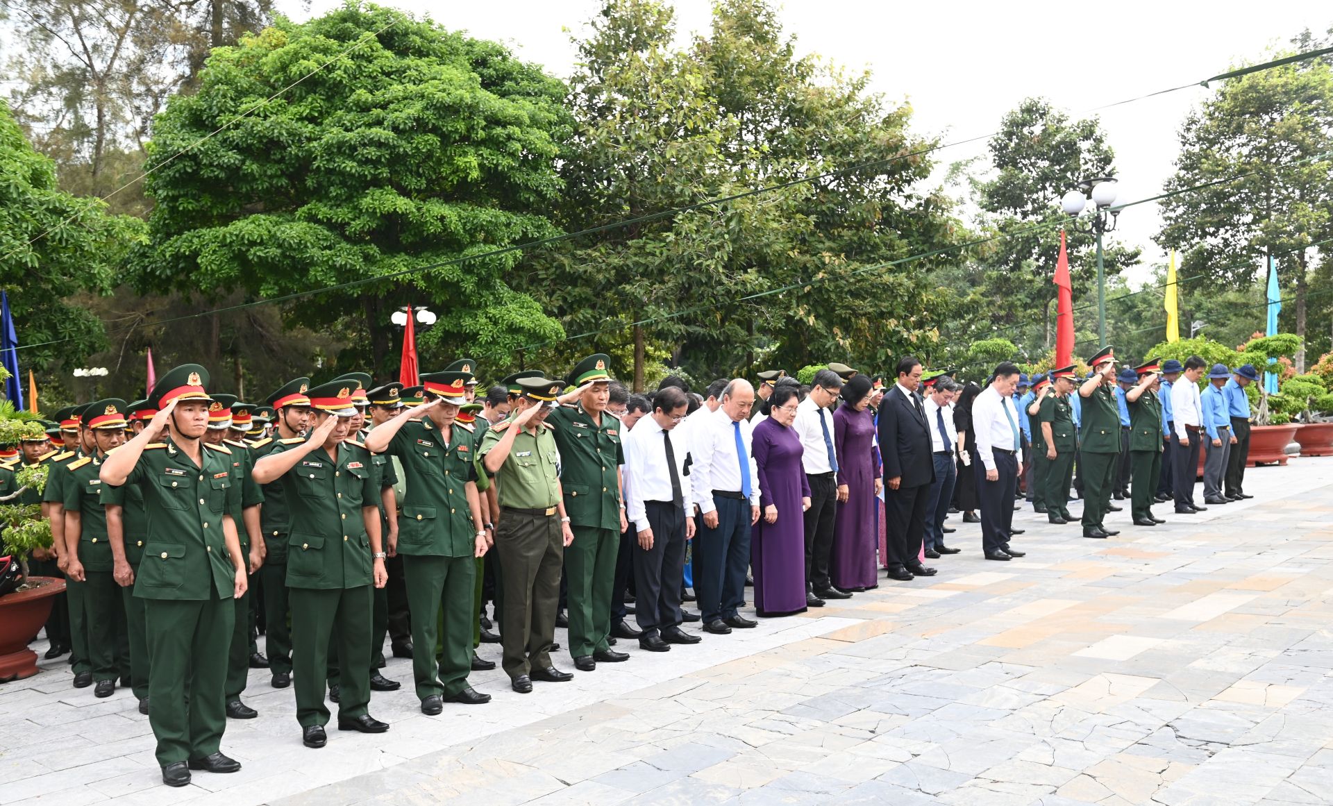 Các vị lãnh đạo mặc niệm tưởng nhớ hương hồn những anh hùng liệt sĩ.