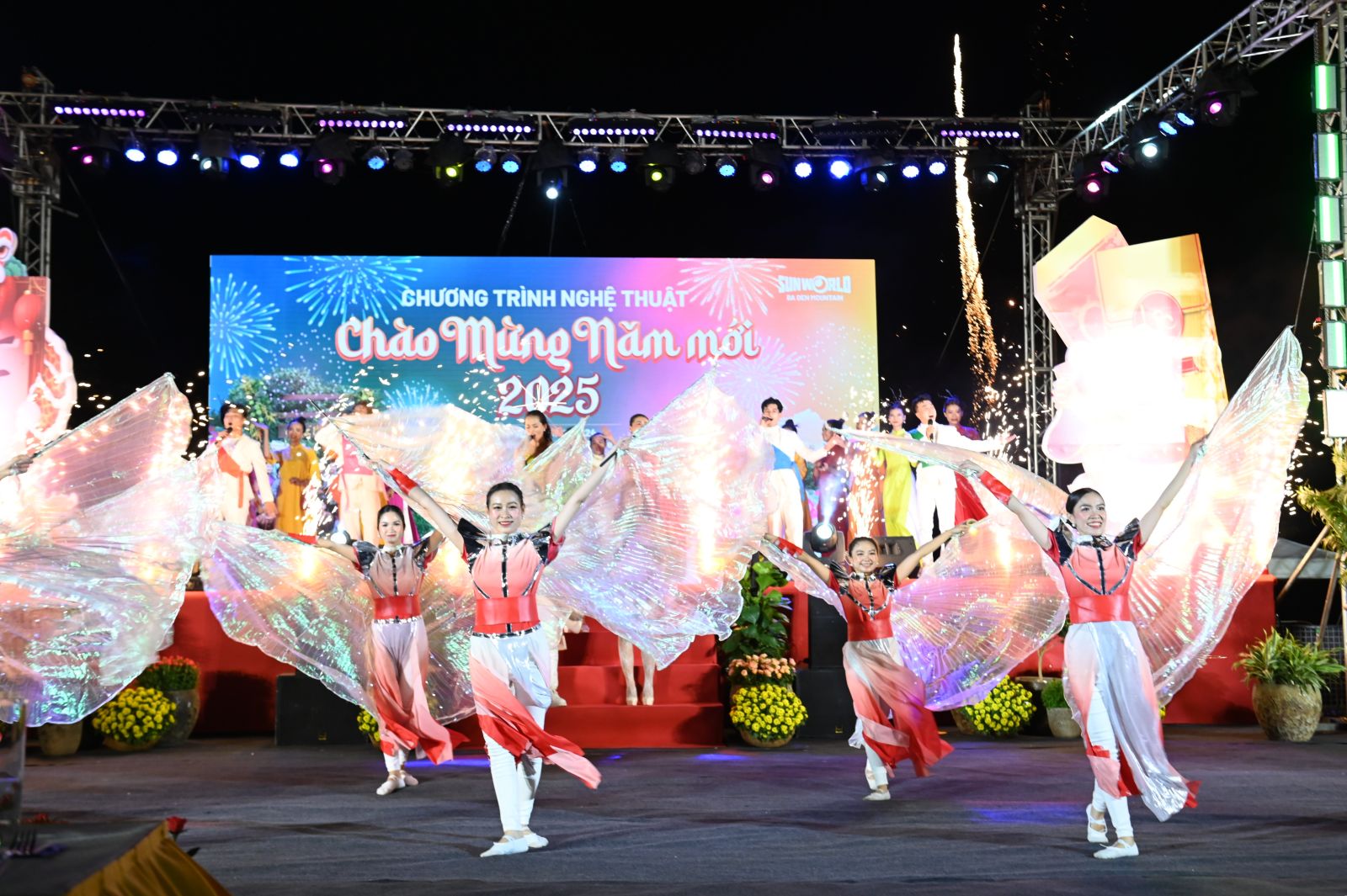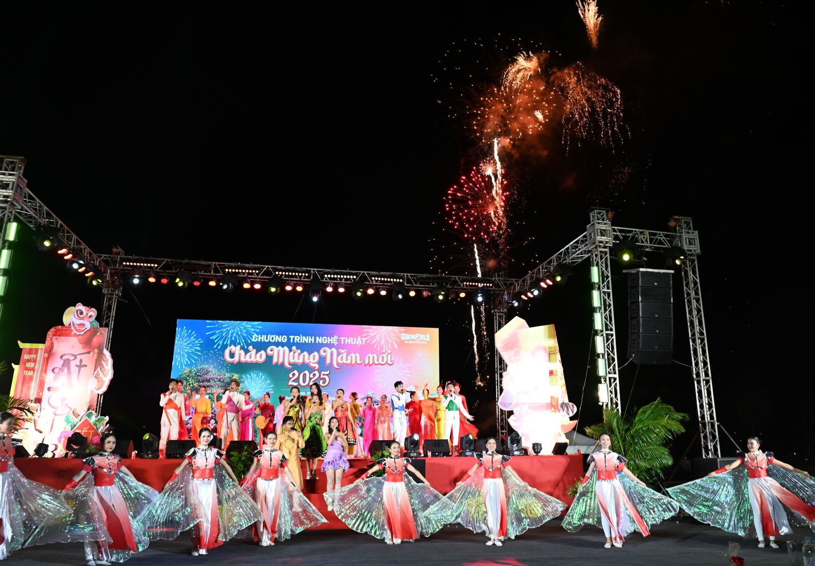 Cuối chương trình là màn trình diễn pháo hoa rực rỡ trên bầu trời để tạm biệt năm cũ, chào năm mới 2025 bình an, ngập tràn niềm vui và hạnh phúc.