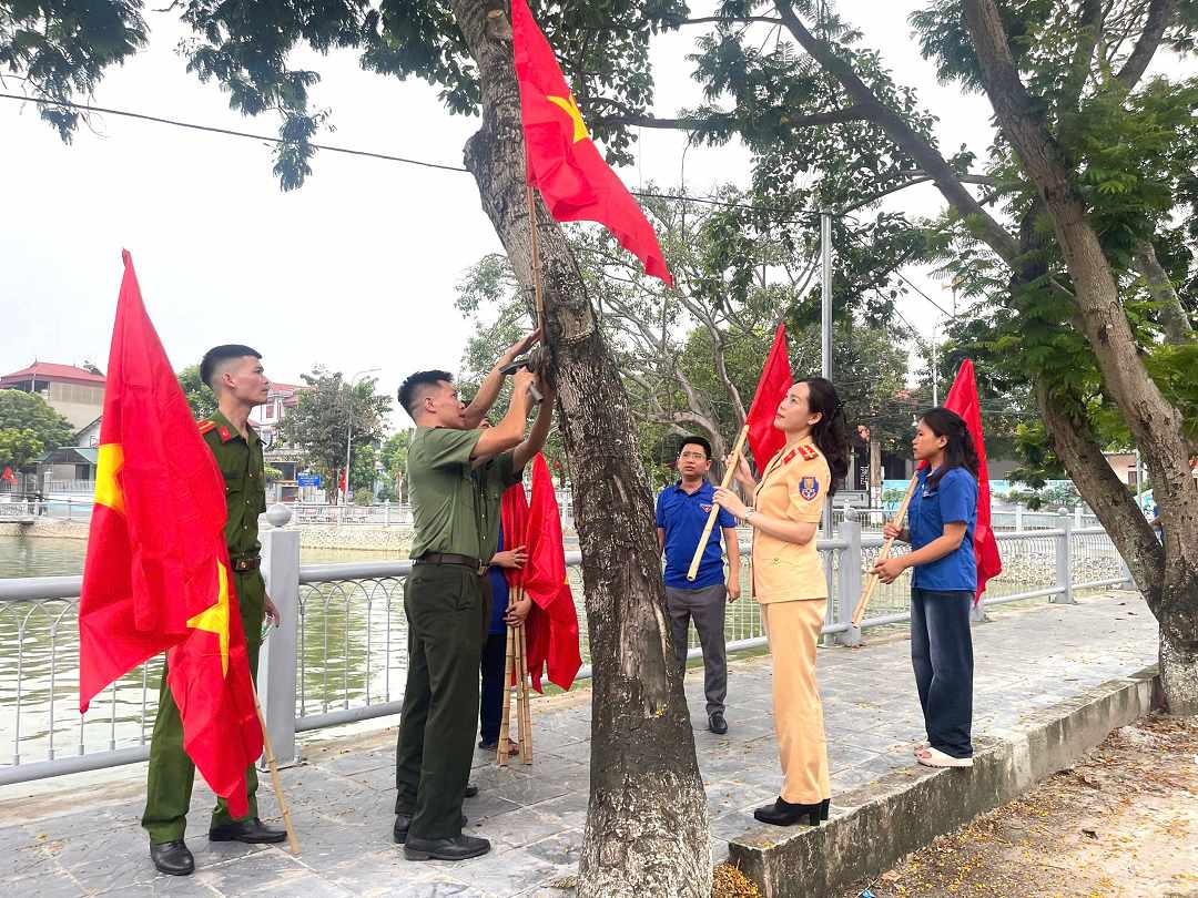 Treo cờ dịp lễ tết. Ảnh: TTXVN