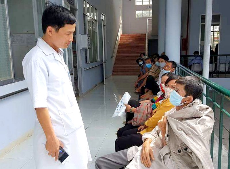 BS.Nguyễn Tiến Dũng- Trưởng khoa Khám bệnh - Hồi sức cấp cứu (Bệnh viện Lao và Bệnh phổi Tây Ninh) thăm hỏi sức khoẻ người bệnh.