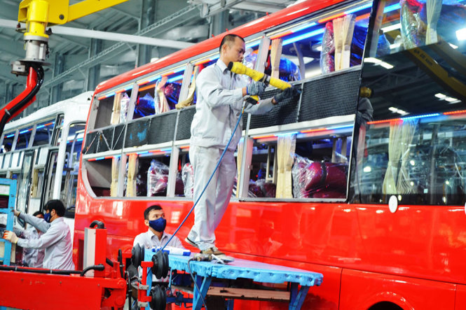 Thaco tiếp tục xây mới nhà máy sản xuất, lắp ráp xe Mazda. Trong ảnh: công nhân đang lắp ráp xe - Ảnh: LÊ TRUNG
