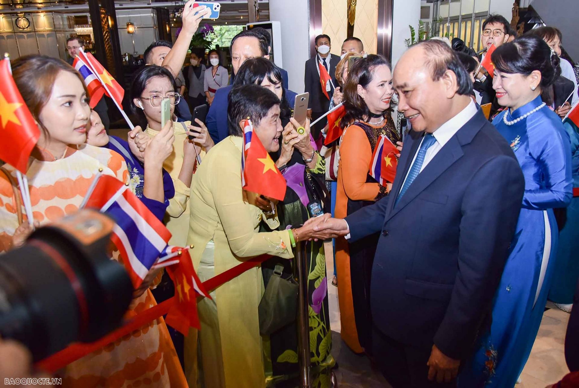 Bà con người Việt tại Thái Lan chào đón Chủ tịch nước và Phu nhân. (Ảnh: Nguyễn Hồng)